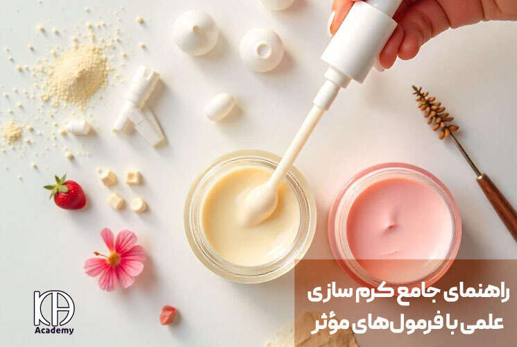 راهنمای جامع کرم سازی علمی با فرمول های موثر به شما کمک می کند تا با درک اصول پایه و پیشرفته فرمول کرم سازی بتوانید محصولات پوستی استاندارد و قابل اعتماد تولید کنید و ترکیبات کرم را بشناسید. در مسیر آموزش کرم سازی شناخت عملکرد هر یک از فازهای روغنی و آبی، امولسیفایر ها و تثبیت کننده ها اهمیت زیادی دارد و رعایت نسبت های صحیح کیفیت نهایی محصول را تعیین می کند. در کرم سازی پیشرفته انتخاب درست مواد اولیه کرم سازی مانند روغن ها، عصاره ها، مرطوب کننده ها و مواد اکتیو تخصصی نقش کلیدی در اثربخشی و ایمنی محصول دارد. اگر قصد ورود حرفه ای به دنیای کرمسازی را دارید یادگیری علمی و مرحله به مرحله، تست پایداری و رعایت اصول بهداشتی به شما کمک می کند محصولی موثر، استاندارد و سازگار با انواع پوست تولید کنید. آموزش کرم سازی همواره با یادگیری فرمول های کرم های مختلف در آمیخته بوده و آموختن هر یک از آنها از الزامات آست.